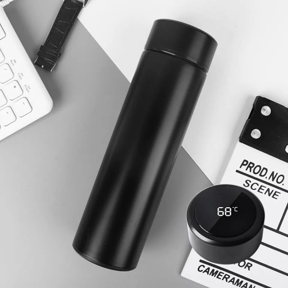 Tamaño Termo : 22.5cm x 6.5cm x 6.5cm Peso: 600 gr Capacidad: 500 ml Material: El cuerpo interior revestimiento de acero inoxidable 304, El cuerpo exterior está hecho de PP (polipropileno) y el fondo de la botella es de silicona antideslizante. Método de carga: no es necesario cargar Tiempo para mantener la temperatura: El agua caliente a aproximadamente 50 se puede mantener durante 8 horas El agua fría puede mantenerse fría durante 12 horas y si agregando cubitos de hielo hasta 24. Características y funciones del producto: 1. Pantalla digital grande y claramente visible, mostrará la temperatura del contenido del producto, la pantalla se apaga automáticamente en un tiempo de inactividad de 3 a 4 segundos. 2.